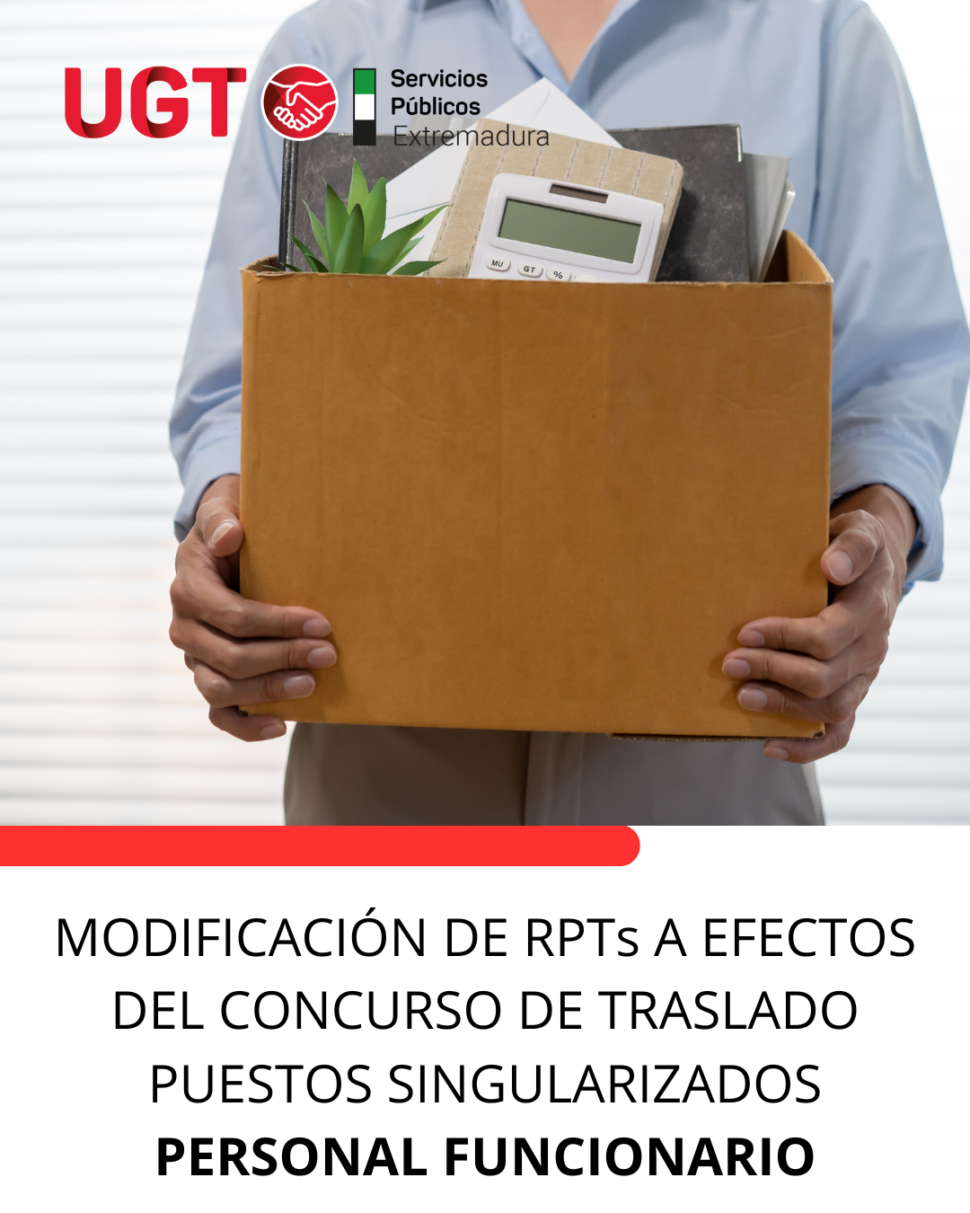 UGT Servicios Públicos Extremadura informa sobre la reunión celebrada hoy en la Mesa Sectorial de Administración General y la Comisión Negociadora para el personal laboral de la Junta de Extremadura, centrada en la modificación de las relaciones de puestos de trabajo (RPT) para el concurso de provisión de puestos vacantes singularizados de personal funcionario de carrera.