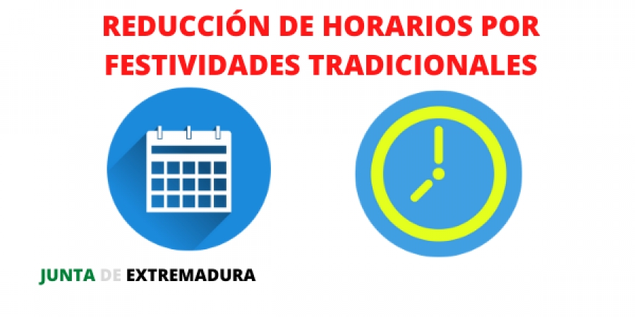 UGT Servicios Públicos Extremadura informa que, en el día de hoy, se ha publicado en el Portal del Empleado Público la Resolución de la Dirección General de Función Pública sobre la reducción del horario en los centros o servicios vinculados al ámbito de personal de la Administración General de la Junta de Extremadura, con motivo de la celebración de festividades tradicionales durante el mes de abril de 2025.