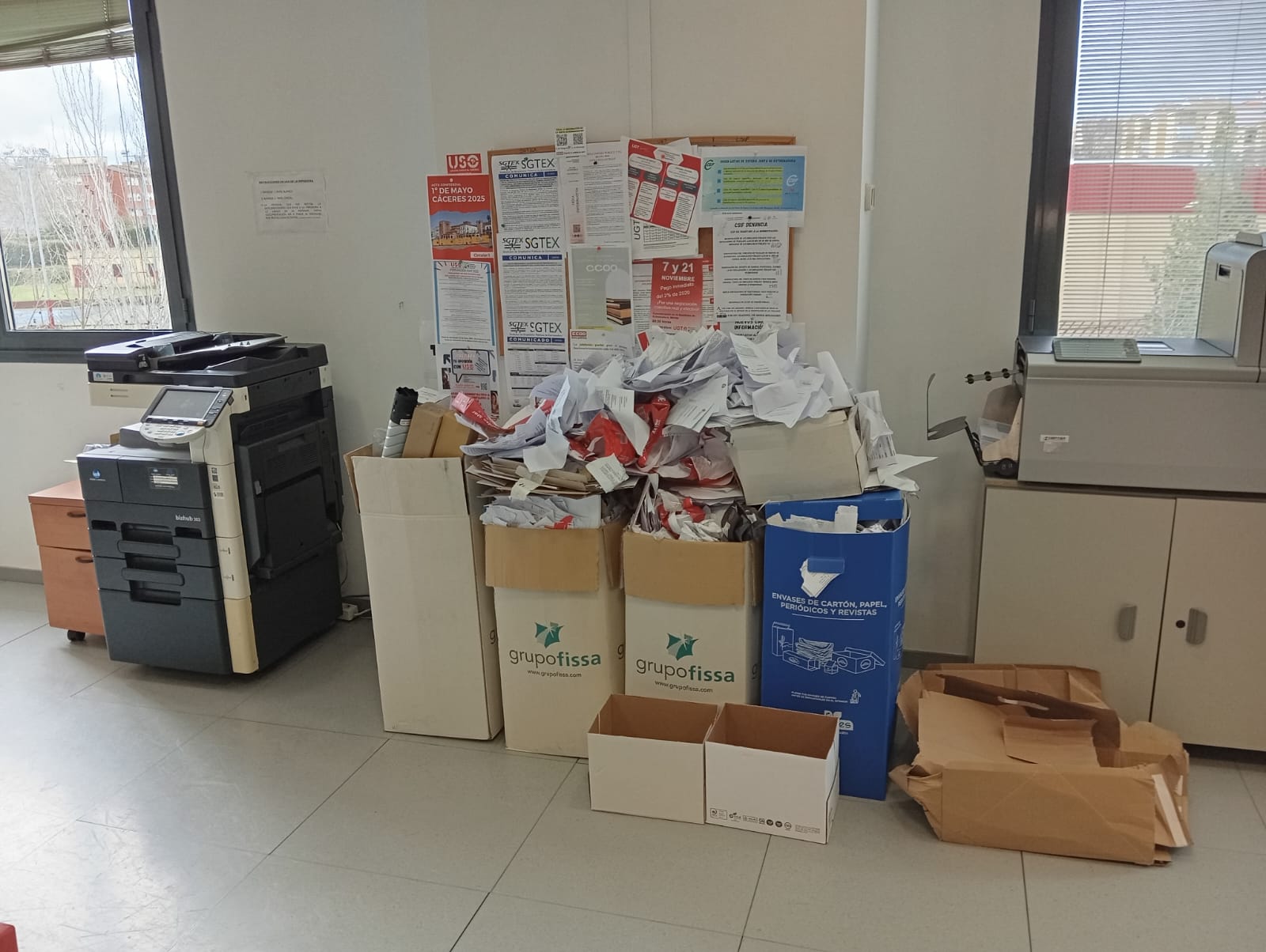 A día de hoy, y tal como hemos constatado en nuestras visitas, los empleados públicos se ven obligados a llevar sus propios productos de limpieza, papel higiénico y de secado de manos, e incluso a retirar la basura de sus puestos de trabajo para evitar la acumulación de residuos. Los contenedores muestran un estado deplorable y el hedor en la zona de los baños y el office comienza a ser insoportable e insalubre.