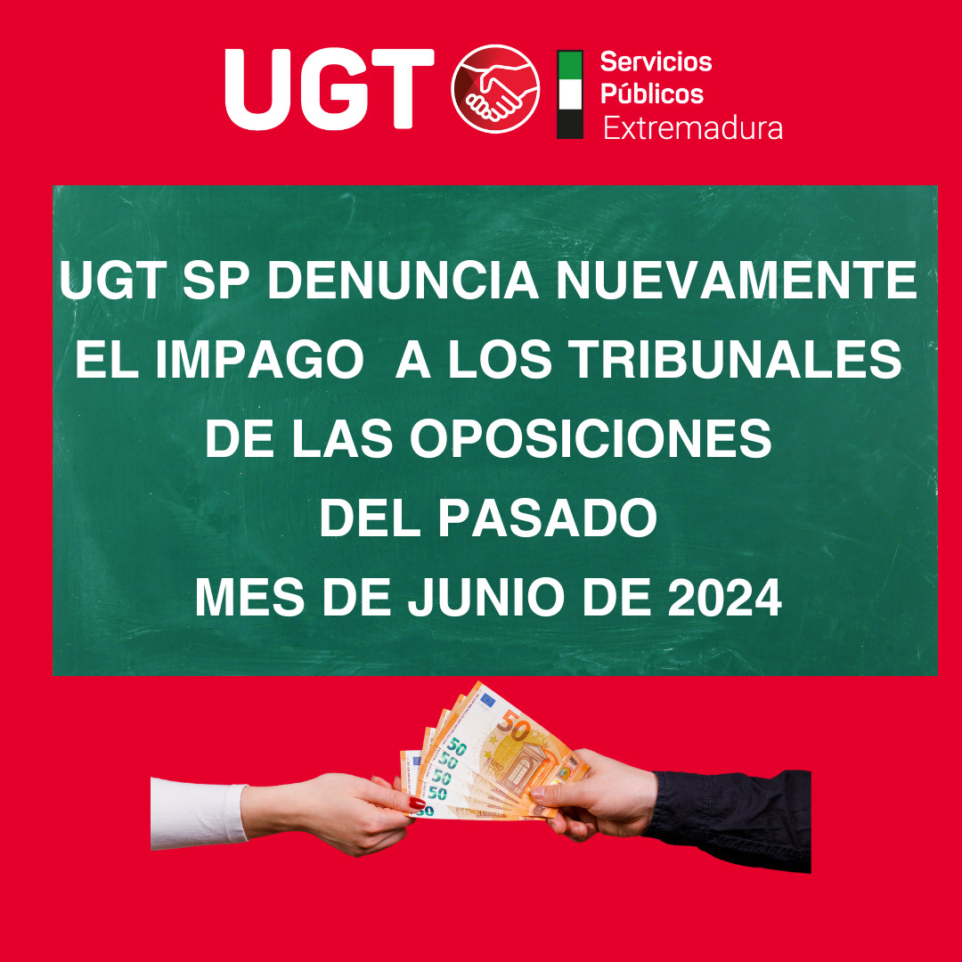 UGT Servicios Públicos Extremadura ha recibido numerosas quejas de docentes que participaron como miembros de los tribunales evaluadores del proceso de oposición de 2024, convocado por Resolución de 27 de diciembre de 2022, y que aún no han recibido el pago correspondiente por su labor. El sindicato denuncia la demora en el abono de estas compensaciones y exige su resolución inmediata.