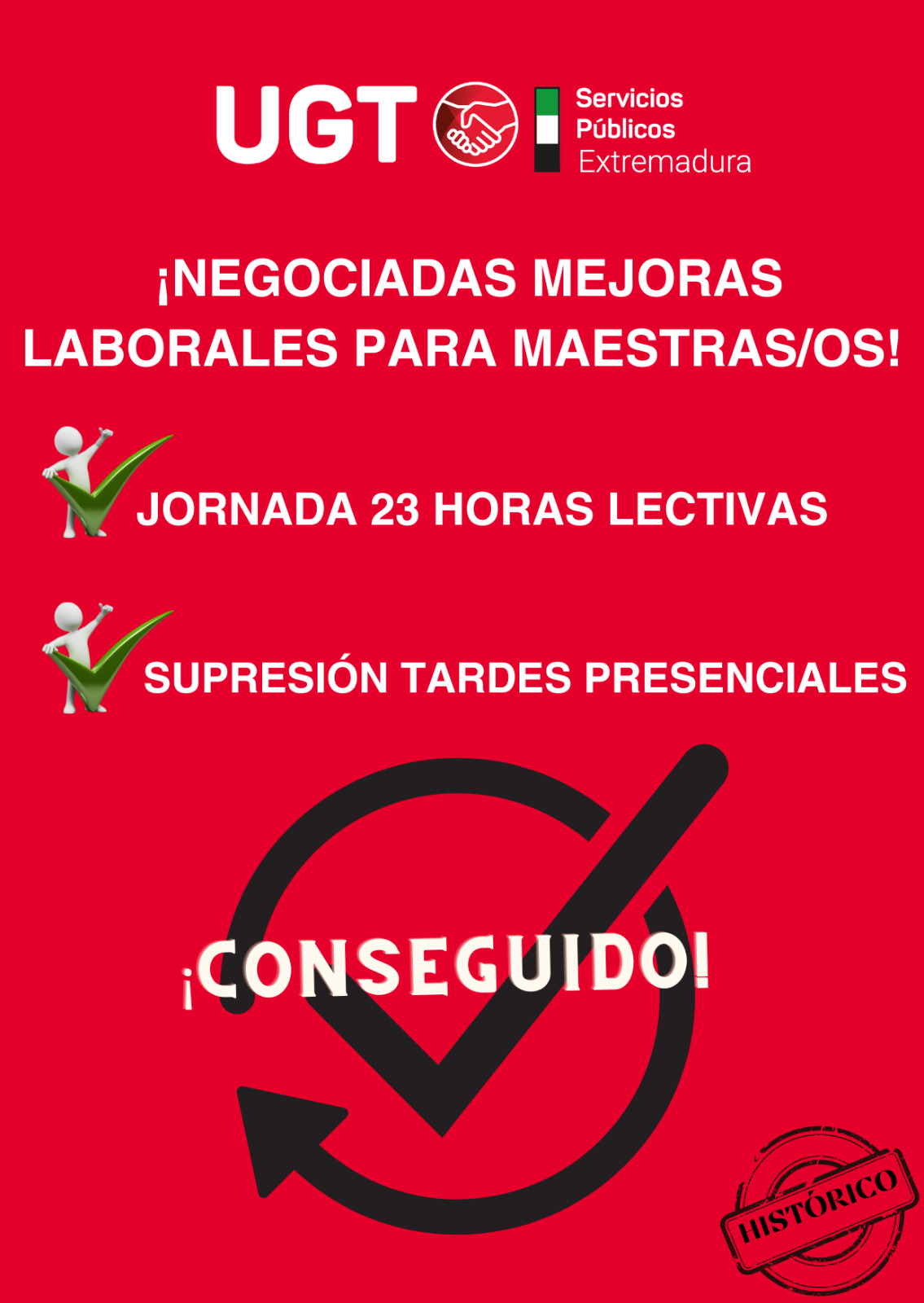 UGT SP exige la inmediata convocatoria de negociación para suprimir las tarde presenciales de las maestras y los maestros de Extremadura