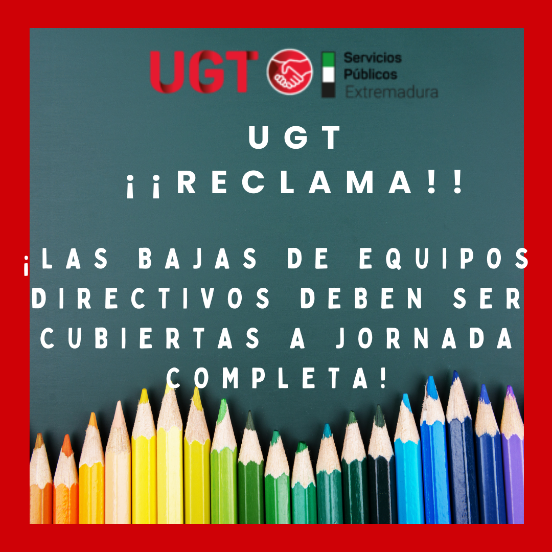El Sector de Enseñanza de UGT Servicios Públicos en Extremadura presenta la siguiente solicitud con el objetivo de garantizar la adecuada cobertura de las bajas de los equipos directivos en los centros educativos y mejorar la gestión del personal docente.